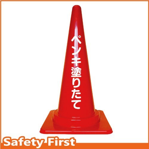 Safety First ペンキ塗りたて 文字入りカラーコーン 赤 (片面)