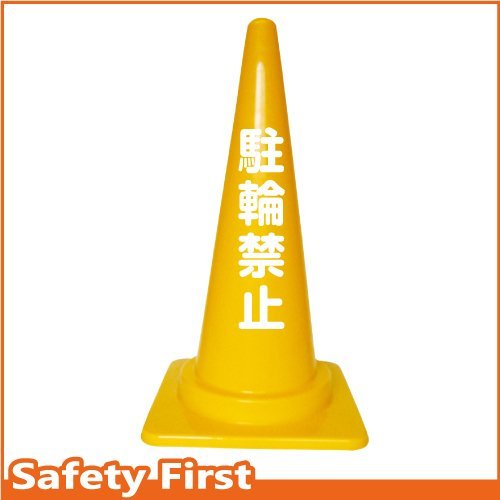 Safety First 駐輪禁止 文字入りカラーコーン 黄 (片面)