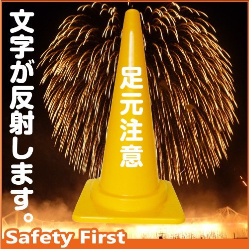 Safety First 足元注意 文字入りカラーコーン 黄 反射文字(片面)