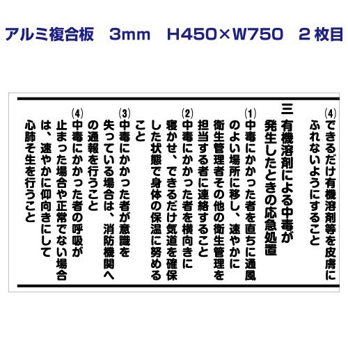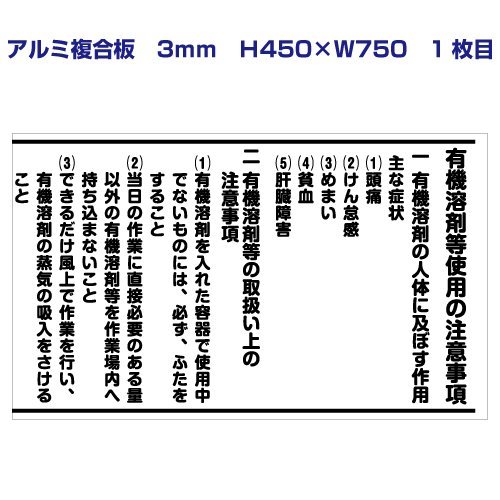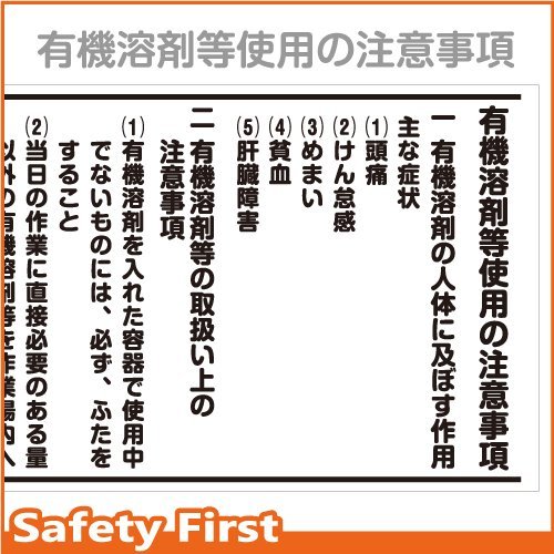 Safety First 有機溶剤等使用の注意事項 450×750mm×厚さ3mm 2枚1組(450×1500mm)