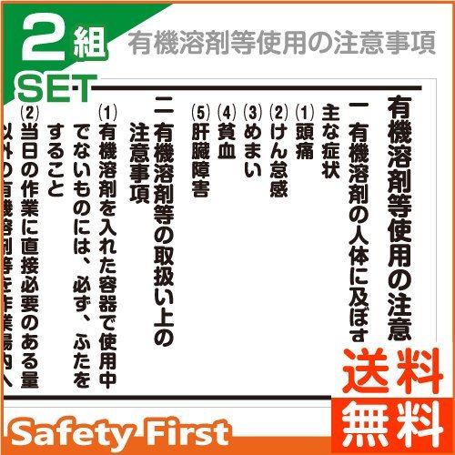 Safety First 有機溶剤等使用の注意事項 450×750mm×厚さ3mm 2枚1組 2組セット (450×1500mm)