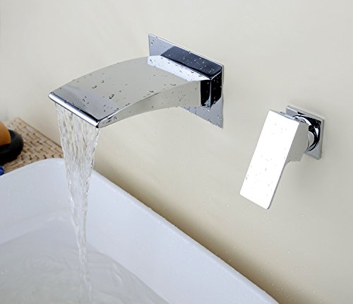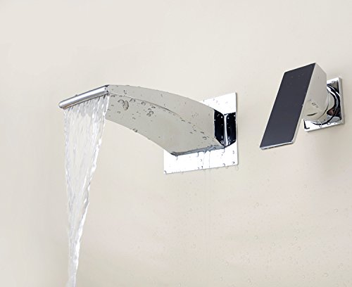 Aquafaucet Waterfall壁マウントWidespreadバスルームシンク蛇口浴槽ミキサータップ、クローム仕上げ A-16427