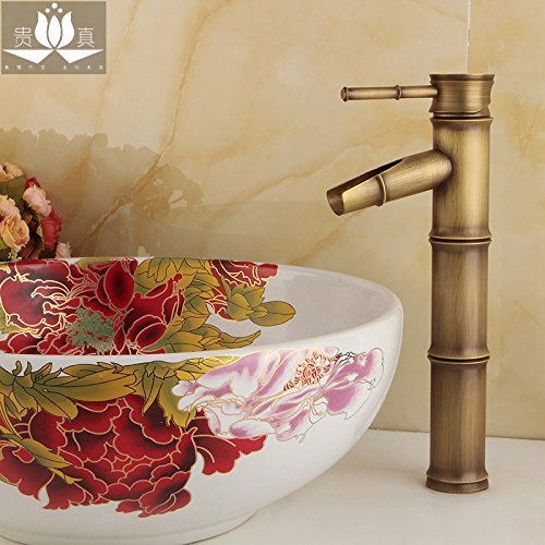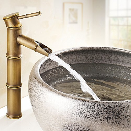 Aquafaucet Waterfall Antique Brass Finish Bathroom Sink Faucet - Bamboo Shape Design [並行輸入品]