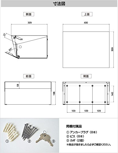 - ★サイズ★投函口:H58mm(37mm)xW395mm ポスト:H196mmxW400mmxD309mm /重さ:4.8Kg