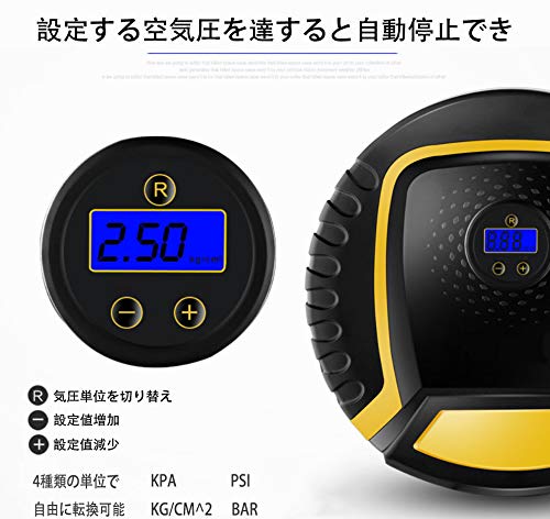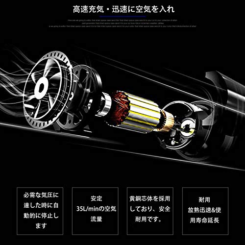 - 【オートメーション】設定する空気圧を達すると自動停止でき。空気吐出量:35L/min、1-6分間で自動車のタイヤに空気を入れることができる。