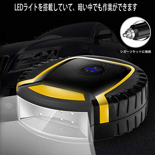 Sanjoki 車用空気入れ エアコンプレッサー 電動 ポンプ 12V LCDデジタル表示 LEDライト付き 自動車 自転車 150PSI 日本語取説 保証書付き