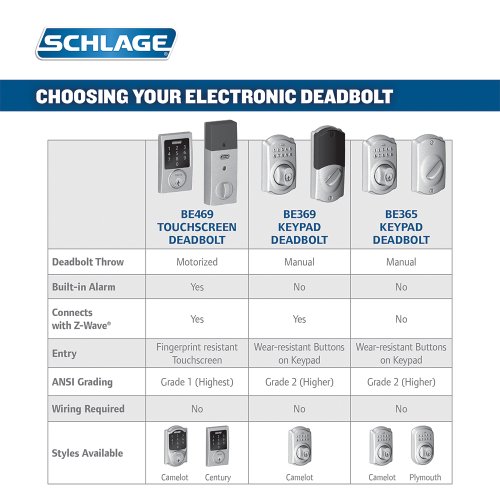 の接続Schlage be469nx-cam完璧の独特のデザインを組み合わせCamelotコレクションのZ - Waveテクノロジーを採用しています。アーキテクチャの点で触発されたアーチとダイビングするカーブでご家庭の装飾とブレンドするためのシンプルスマートなタッチスクリーンの遷移を美しくKeypad。この外観が最高の定格とペアにデッドボルトの標準キーをタッチスクリーンのキーパッド、またはリモートで制御できる住宅のセキュリティを確保するために、Z - Waveて、電話や計算によって互換性のあるホーム・オートメーションやセキュリティシステムではありません。これらの機能をすべてために作られインストールされたかどうかを各種の標準ドア仕様で、配線は不要、このデッドボルトは理想的なの選択となり安全性、美しさ、利便性と機能性を提供します。機能が導入されています。ANSI等級1 :住宅セキュリティの最高等級無料汚れと指紋からの保護のための耐久性のある抵抗タッチスクリーンロック毛羽立ち防止シールドの改ざん、4桁のコードを入力で自動的にモーターをロックまたはロック解除するには、次のボルトの1年間のバッテリー寿命4 AA電池が含まれてい1年間の電気的/機械保証の一生涯限定保証さ仕上げトリプルオプションラッチ組み込みテーパされたデッドボルトラッチ搭載の隅にあるラウンドコーナー、四角形やドライブイン得る簡単取付配線不要でアラーム3アラート設定が含まれています。警告:家庭中の家を監視します。一方、アクティビティ時に2つの短いビープ音をもたらしが付いています。ドアが開く閉じていてもかまいません。改ざんアラートを発行します。最も重要なの設定で、このか、のために秒のハンドルでのノイズに動きを検出するかロックを解除します。この設定は、とても補助の入口、夜は安らかな家に、。強制エントリが作成されます。縮みSirenが場合に、オフフォースはへ分割またはロックされていることを無効にする。この最も感知モードでは、この値は優れたままにし、常にオンであるから、通常の活動としては 39 ; T SET IT OFF