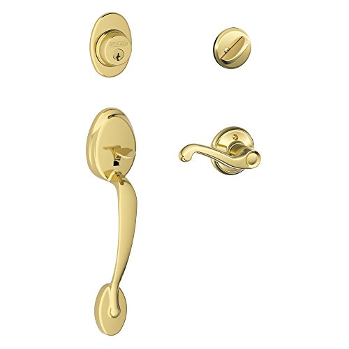 Plymouth Single Cylinder Handleset and Right Hand Flair Lever, Bright Brass (F60 PLY 605 FLA RH) by Schlage Lock Company
