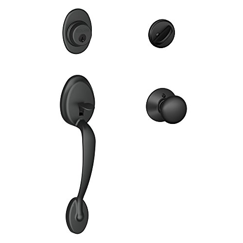 Plymouth Single Cylinder Handleset and Plymouth Knob, Matte Black (F60 PLY 622) by Schlage Lock Company