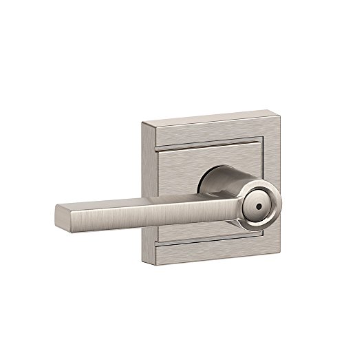 Finish coordinates easily with plumbing and lighting fixtures. The Schlage latitude satin nickel privacy lock lever with upland trim is perfect for use on bedroom and bathroom doors where locking is needed. The latitude lever offers a crisp perspective on minimalist design with its clean lines and rectangular features, while the upland trim offers a fresh take on elevated yet simple design that works especially well with open floor plans and geometric designs. The lever is especially popular in our versatile satin nickel finish. Plus, it's been designed and tested with strength and durability in mind.