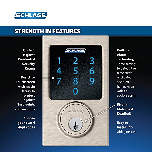 Schlage Connect Century Touchscreen Deadbolt with Built-In Alarm, Satin Nickel, BE469 CEN 619 [並行輸入品]
