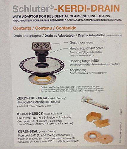 Schluter Kerdi 排水アダプターキット (ABS樹脂版) は、従来のクランプ式排水リングに防水効果を搭載するものであり、取り除くものではありません。このキットは従来のクランプ式排水リングにしっかり取り付けた統合型フランジによって排水部品を作るものであり、耐水性のある膜を作る事が出来ます。アダプターキットはほとんどの商用もしくは家庭用クランプ型シャワー用排水リングに使用可能です。油性塗料付きブロンズの表面にも使用可能です。