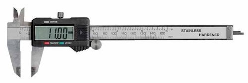 Features: 1. Measuring range: 0-150 mm/0-6 inch 2. Repeatability: 0.01Mm/0.0005 in 3. Resolution: 0.01Mm/0.0005 in 4. Accuracy: + 0.02 mm/0.001 in. (≪100 mm), + 0.03 mm/0.001 in. (≫100 - 150 mm) 5. Measuring speed: ? 1.5M/s 6. Power: 1 x 1.5V Lr44 (button cell) battery (included) 7. Battery life: 1 year for continuous usage/3 years under normal operation 8. Linear capacitive measuring system 9. Internal, external and HEIGHT dimensions can be easily and accurately measured 10. With data holding, fast display, fast tracing maximum and minimum value during measurements 11. Calibrates to zero, and can change from mm to inches with the touch of a button 12. Zero setting in any position 13. Includes extra battery and case 14. Used for industrial work, hobby work, jewelry, gunsmithing, etc package includes: 1 x 6' led digital Vernier caliper stainless steel imported made of height quality hardened stainless steel measures inside, outside and depth from 0 inch to 6' or 0Mm to 150Mm with easy to read large led display base measuring function: inside, outside, depth and step measuring with a small locking thumb screw which locks the jaws in place.