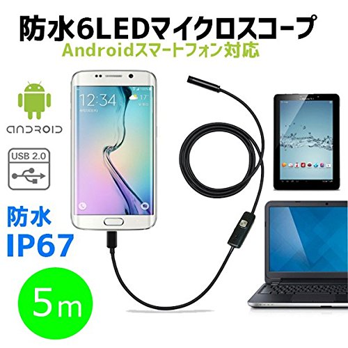 Sea the Stars 防水 6LED マイクロスコープ カメラ / アンドロイド 対応 スネイクカメラ スマホ タブレット パソコン USB接続 直径7mm 5m エンドスコープ LEDライト 付き
