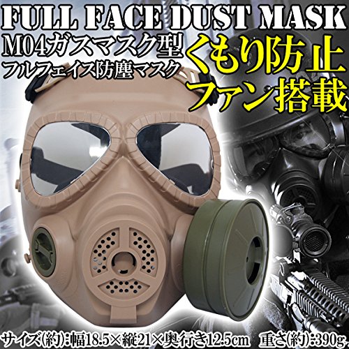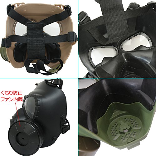 特殊部隊が使用するガスマスクの形状をモチーフとしたフルフェイスガード! くもり防止ファン搭載 特殊部隊が使用するM04ガスマスクの 形状をモチーフとしたフルフェイスゴーグルです 円形のダミーフィルター部分の内部にはファンがしこまれており、 レンズの曇りをおさえる働きをしてくれます 【仕様】 サイズ(約):幅18.5×縦21×奥行き12.5cm 重さ(約):390g 電源:単3電池2本を使用(※別売) ウレタンシート:1枚付属 (額の部分にクッションとして貼り付けで来ます。)