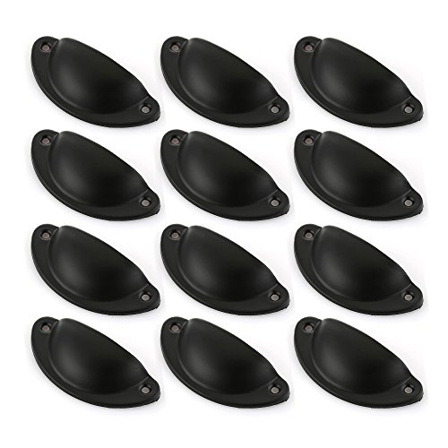 Seacan 取っ手 引き出し ハンドル 取手 アンティーク つまみ 金具 ノブ アイアン 半月型 (12枚,ブラック)