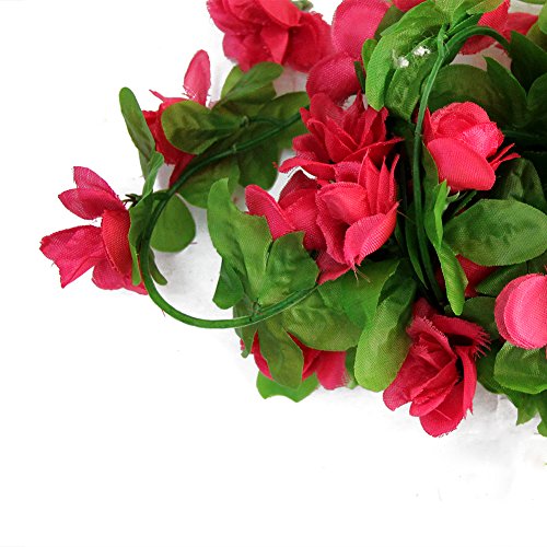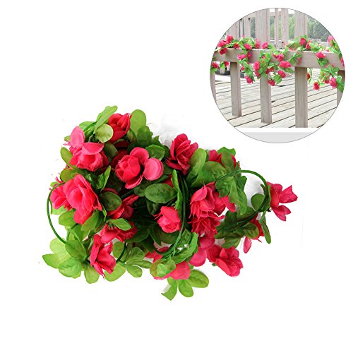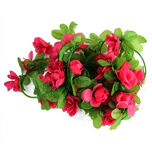 Seacan つるバラ 造花 2.3m インテリア 飾り 壁掛け 吊り下げ 観葉植物 ガーデニング 結婚式 お祝い 祭り 家庭装飾 窓装飾 パーティー グリーンホテル (深いピンク)