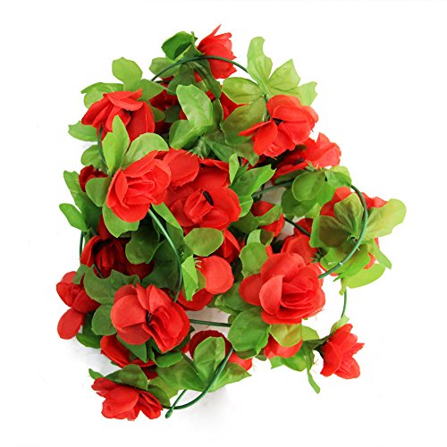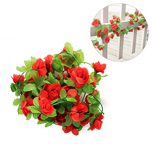 Seacan つるバラ 造花 2.3m インテリア 飾り 壁掛け 吊り下げ 観葉植物 ガーデニング 結婚式 お祝い 祭り 家庭装飾 窓装飾 パーティー グリーンホテル (レッド)
