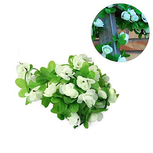 Seacan つるバラ 造花 2.3m インテリア 飾り 壁掛け 吊り下げ 観葉植物 ガーデニング 結婚式 お祝い 祭り 家庭装飾 窓装飾 パーティー グリーンホテル (ホワイト)