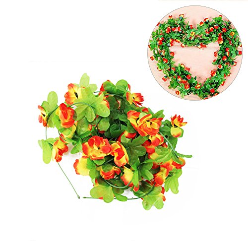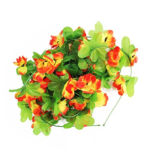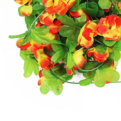 Seacan つるバラ 造花 2.3m インテリア 飾り 壁掛け 吊り下げ 観葉植物 ガーデニング 結婚式 お祝い 祭り 家庭装飾 窓装飾 パーティー グリーンホテル (オレンジ)