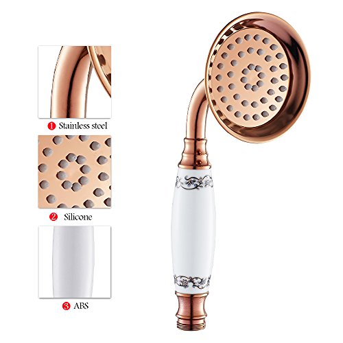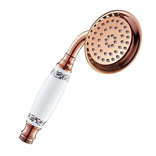 Seacan シャワーヘッド アンティーク 節水 低水圧 取手陶器 汎用 浴び心地いい 取付簡単 (ローズゴールド)