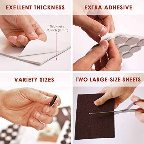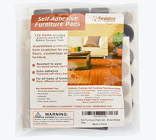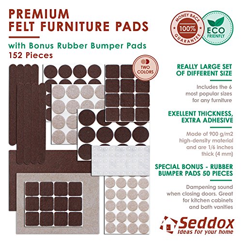 seddoxプレミアムフェルト家具パッド2色セット(ブラウン+ベージュ) – 152ピースIncludingボーナスラバーバンパーパッド – Best椅子Hardwood Floor Protectors for Yuor Wood andラミネートフローリング