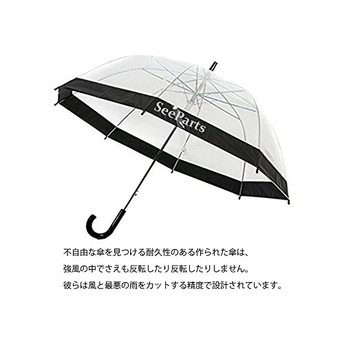 クリアバブル傘 透明 バードケージ構造 ブラックトリム 100%ポリエステル クリアバブル傘 SPA-003