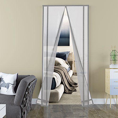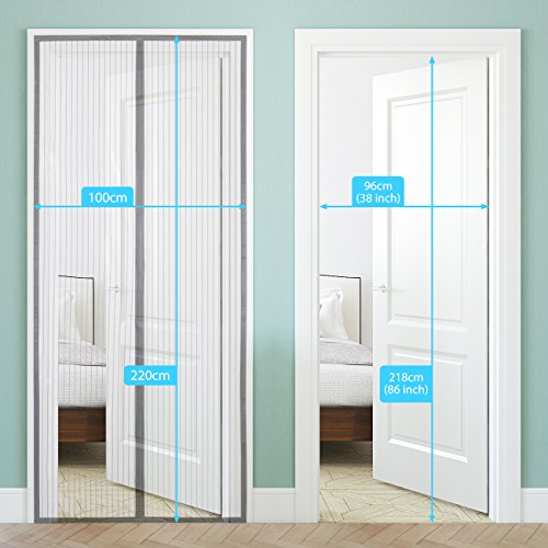 Sekey マグネット開閉式 サイズ調整可能 玄関 ドア 勝手口 ベランダ 網戸 カーテン 自動で閉まる 間仕切り 蚊帳 虫よけ 蚊取り 害虫対策 エコ 断熱 保温 暑さ対策 100cm×220cm 90cm×210cm 両対応 12ヶ月保証 灰色