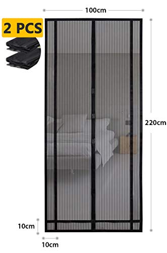 Sekey マグネット開閉式 サイズ調整可能 玄関 ドア 勝手口 ベランダ 網戸 カーテン 自動で閉まる 間仕切り 蚊帳 虫よけ 蚊取り 害虫対策 エコ 断熱 保温 暑さ対策 100cm×220cm 90cm×210cm 両対応 12ヶ月保証 黒 2点セット