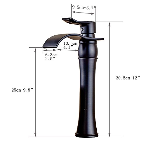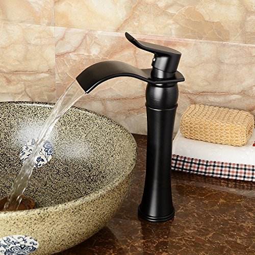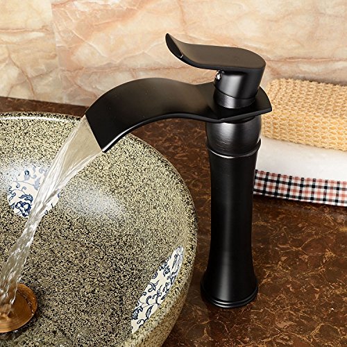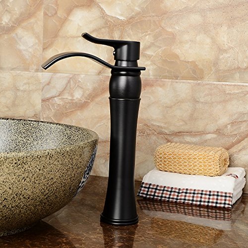 Senlesenウォーターフォール浴室蛇口シンクVesselシングルハンドル盆地ミキサータップ、ORBオイルはブロンズ洗面所洗面Tallボディ ブラック 25