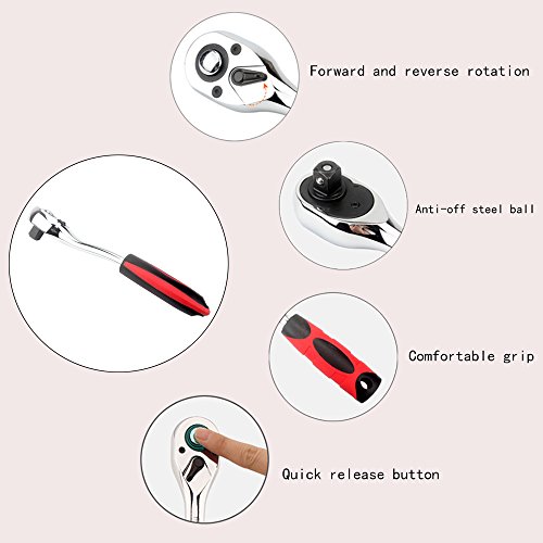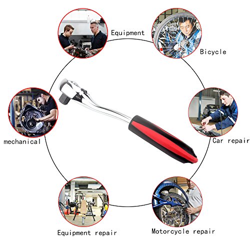 Senzeal 72ティースエクステンディング クイックリリースラチェットレンチツール 3/8"-Curved M-7