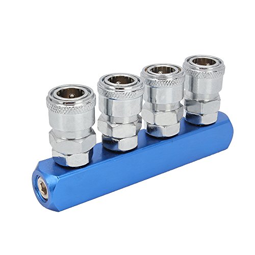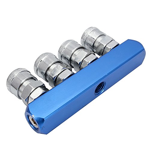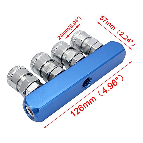 Senzeal 4連エアーカプラー エアホースコネクタカプラブルー エアーコンプレッサー用ツインソケット