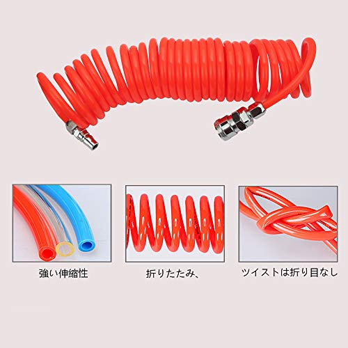 Senzeal 6mリコイルエアホース エアーコンプレッサーホースチューブ スクリューエアーホースレッド エアーコイルホース6m