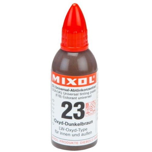 Mixolユニバーサル染料は、現在市場に出ている製品の中で、最も濃度の高い最高品質の染料ですほとんどの水、溶剤、ラッカー、油性の汚れ、コーティング、シェラック、エポキシ樹脂、ワックス、ワニス、木材フィラーなどと一緒に使用することができます。Mixolの製品の主な特徴は、簡単な着色や混合、そして洗練された色合いです。Mixolの染料は、熱や凍結によるダメージにも強い耐性を備えています。結合剤が含まれていないため、固まったり、濃くなったりせず、長い間保存することができます。当社は全25色を取り揃えています。そのうちの11色は酸化物系です(色番号03、04、05、14、19、20、21、22、23、24、25)。酸化物系の色は無機顔料を使用しているため、色褪せや色あせしにくく、防水です。酸化物系の色は、屋外での使用や、紫外線による色あせが起りやすい場所に適しています。石けんと水で簡単に落とすことができます。Mixolの染料は、不燃性、無毒性です。