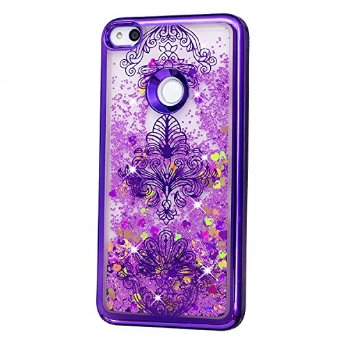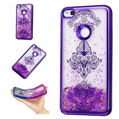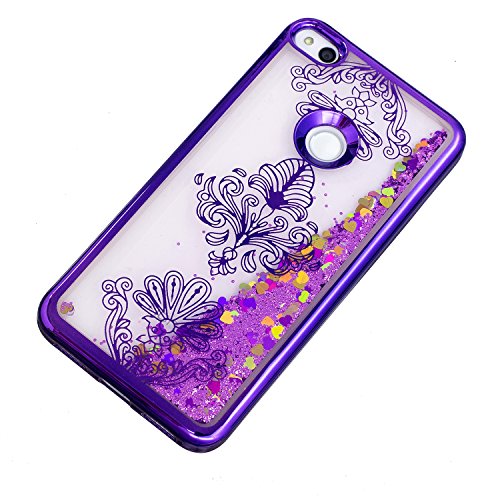 HUAWEI P8 Lite 2017ソフトケース、SevenPandaグリッター液体保護ケースソフトシリコンカバーHuaWei P8 Lite 2017スリムスーパー軽量ソフトシェル携帯電話ケース保護ケースポーチスクラッチプルーフTPUケースパターンクリスタルクリアクリスタル携帯電話ケース - パープルフラワー