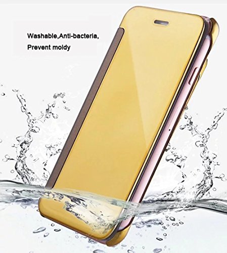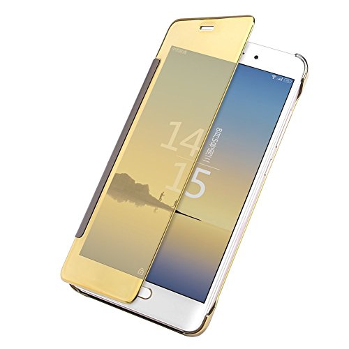 Samsung S8 ケース、SevenPanda Galaxy S8保護ケースラグジュアリーミラーミラー電話ケースメッキキラキラクリスタル透明な本薄型ラインストーンPC硬質アルミノンスリップアンチスクラッチ携帯電話ケースシェルカバー - ゴールド