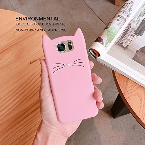 Samsung S7、セブンパンダSamsung S7 のシリコーン保護ケースTPUシリコーンの3D漫画ファッションかわいいひどいかわいい猫ソフトバックケースカバーとアンチスクラッチ衝撃吸収携帯電話保護袋シェルバンパー - ピンク