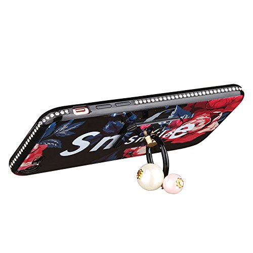IPhone 10 5.8インチ キラキラケース、SevenPandaフラワースマイルパターンシャイニーキラキラクリスタルラインストーンディアマンテソフトフレックスシリコンケースクリスタル超薄型TPU携帯電話スリーブプレミアムスクラッチ耐性TPUシリコン保護付きバックカバー用 iPhone 10 / X サークルスタンド- フラワー02