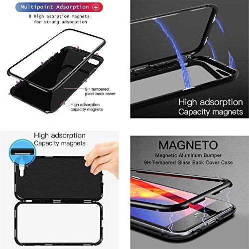 Samsung S8+ Plusケース、Samsung Galaxy S8 Plusケース、SevenPanda磁気吸収ボックスメタルフレーム磁性カバー付強化ガラス全身スリムフィット超薄型軽量ケース強力磁気吸着テクノロジーSamsung S8 Plus用 - 透明+ブラック