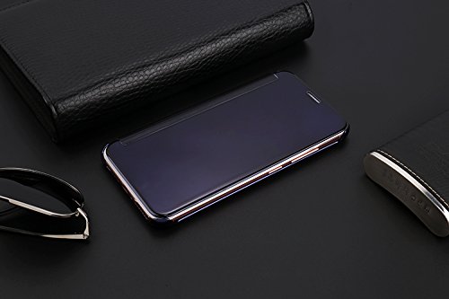 iPhone 6S携帯電話ケースミラー、iPhone 6Sケース、SevenPanda 財布フリップラグジュアリーメタル透明ケースカバー携帯電話ケース超薄型キラキラクリスタルラインストーンブックPCハードアルミスクラッチ耐衝撃性衝撃吸収携帯電話ケースシェルカバー - ダークブルー