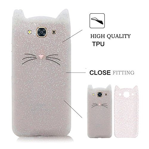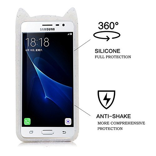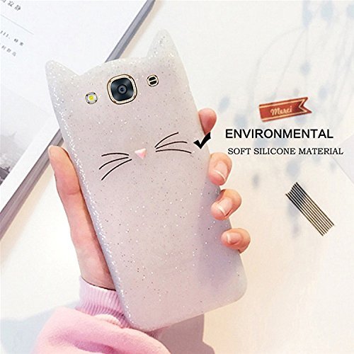Samsung J3 2016 / Galaxy J310ケース、Samsung J310クリエイティブ携帯電話保護カバー、SevenPandae 3DプレミアムラブリープロテクトソフトTPUゴムソフトTPUシリコンバッククリスタルキャットムスタッシュスキンカバー漫画アクセサリー電話カバー - ホワイト