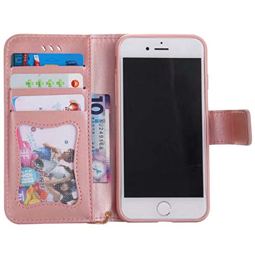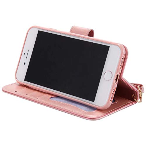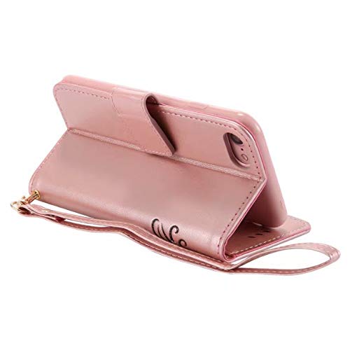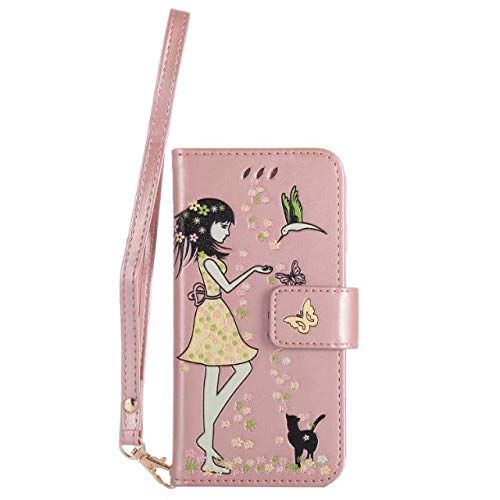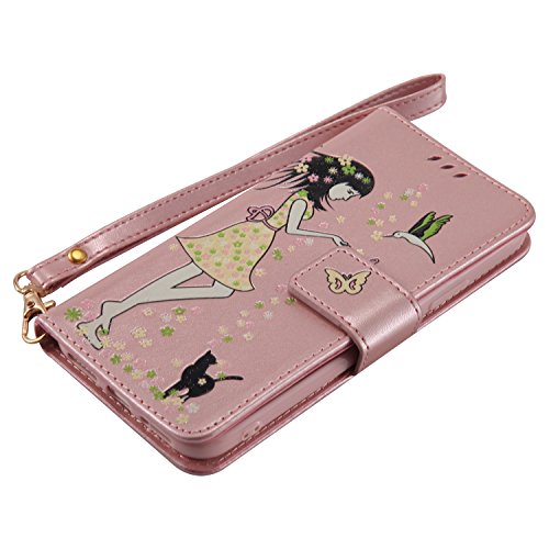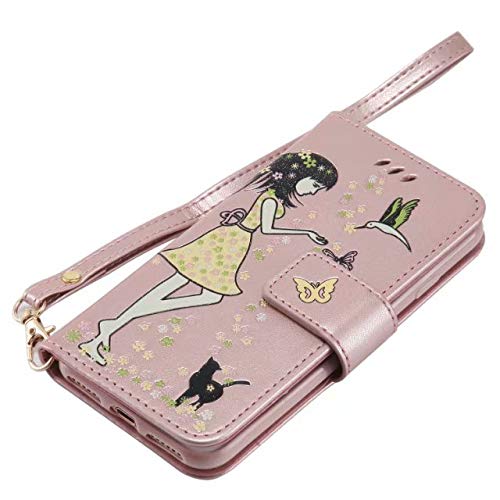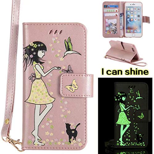 iPhone 7 Plus/iPhone 8 Plusウォレットケース、SevenPandaルミナスレザーウォレットケースブリーフケース保護ケース美しい少女と猫のパターンナイトルミナスデザインスタンド機能付きブックスタイルで高品質PUレザーケースケースカバークレジットカードのコンパートメントiPhone 7 Plus/iPhone 8 Plus 5.5インチ用 - ローズゴールド