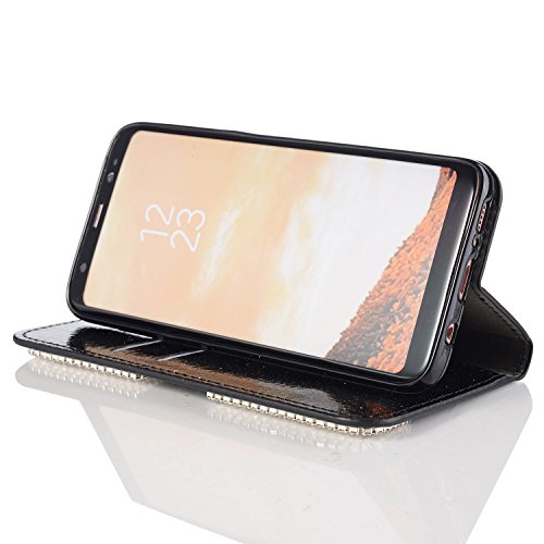 ダイヤモンドは光沢のあるPUレザーウォレットの電話カバーを飾る。