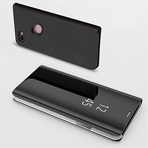Xiaomi Redmi Note 4X電話ケースメタル、Xiaomi Redmi Note 4Xケーススタンド、SevenPandaフリップミラー高級透明ケースカバー電話ポーチスマートスリープ/ウェイク機能超薄型キラキラクリスタルラインストーンブックPCハードアルミスクラッチ耐衝撃衝撃吸収携帯電話バッグシェルカバー - ブラック