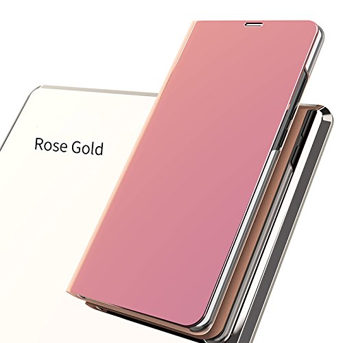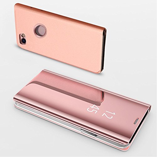 SevenPandaスタンドケースXiaomi Redmi 6 Pro、Xiaomi Redmi 6 Pro携帯電話ケースシェル超スリム36 Pro0度フルボディ半透明窓ビューフリップウォレットスタンドカバーカバーラグジュアリークリアビュープレートミラー携帯電話ケース金属電球メッキPCミラーフリップ携帯電話ケースシェル - ピンク