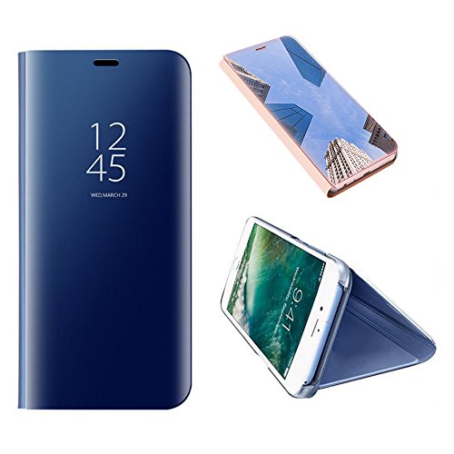 SevenPanda for iPhone 6 Plus / 6S Plus 5.5インチ ケース、iPhone 6 Plus / 6S Plus ケース光沢メッキメイクミラースタンド超スリム360度フルボディスタンドカバーラグジュアリークリアビューメッキミラーケースメタルメッキメッキPCミラーフリップ携帯電話ケースシェル - ブルー
