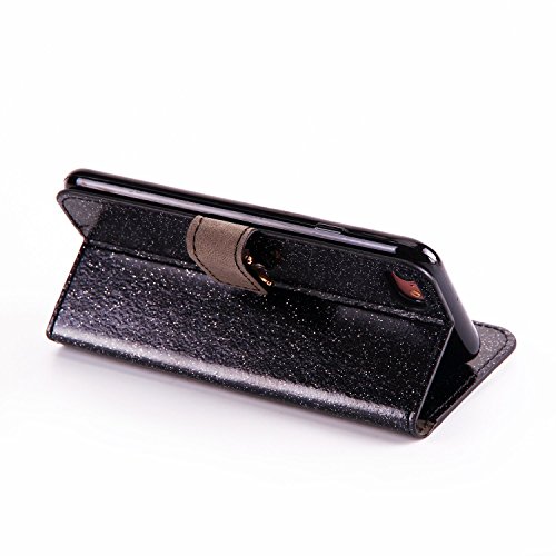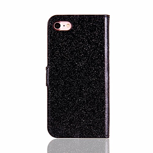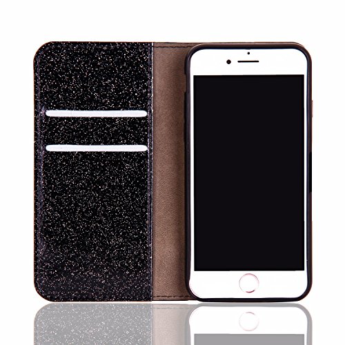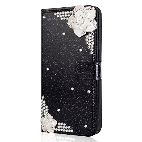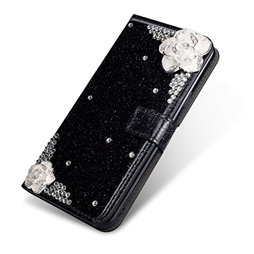 iPhone 7 Plus / 8 Plus ウォレットケース、SevenPanda高級ブリンブリンダイヤモンドキラキラクリスタルラインストーン [3D DIYフラワー]カメリアフラワープレミアムPUレザーマグネットフリップフォリオスタンドショック防止保護カードスロットホルダースタンドカバーシャイニーフルボディケースiPhone 7 Plus / 8 Plus - ブラック