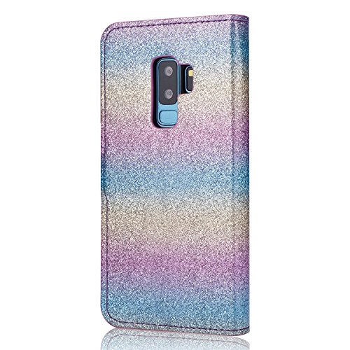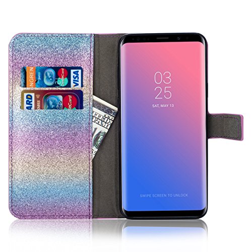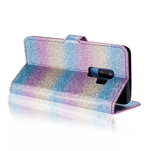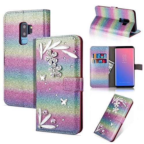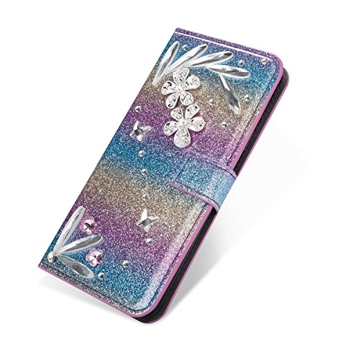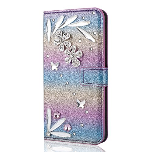 Galaxy S7 Edge スパークリングウォレットケース、SevenPandaラグジュアリーブリンダイヤモンドキラキラクリスタルラインストーン [3D DIYフェザー]フェザーフラワープレミアムPUレザー磁気フォリオスタンド耐衝撃保護カードスロットホルダースタンドカバーシャイニーフルボディケース Samsung Galaxy S7 Edge - レインボーブルー