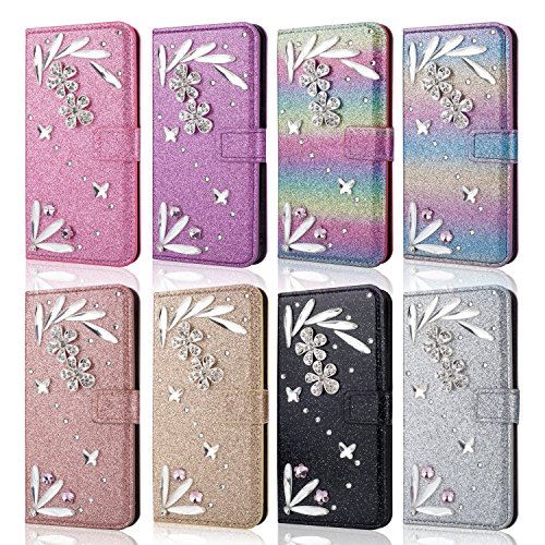 ダイヤモンドは光沢のあるPUレザーウォレットの電話カバーを飾る。