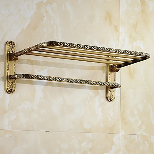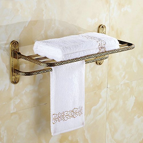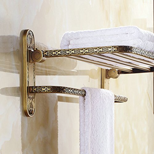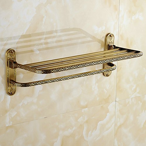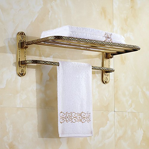 ツインフラワーシリーズ彫刻アンティークブラスタオルラックタオル棚シングルタオルバーフック付き壁掛けバスルームアクセサリー